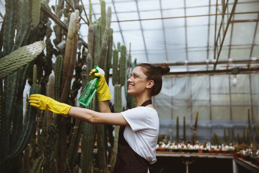 Weniger Mittel bedeuten oft bessere Ergebnisse: Verdünnte Lösungen, lauwarmes Wasser und kurze Einwirkzeiten schützen Oberflächen und sparen Ressourcen. Teste neue Mischungen an verdeckten Stellen und teile in den Kommentaren deine minimalistischen Lieblingstricks.